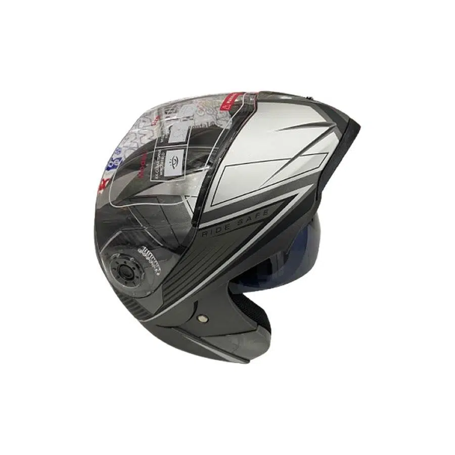 EtiketlerJK20 Çene Açılır Güneş Vizörlü Motosiklet Kaskı Gri Siyah L Beden Baş Çevresi: 59-60CM